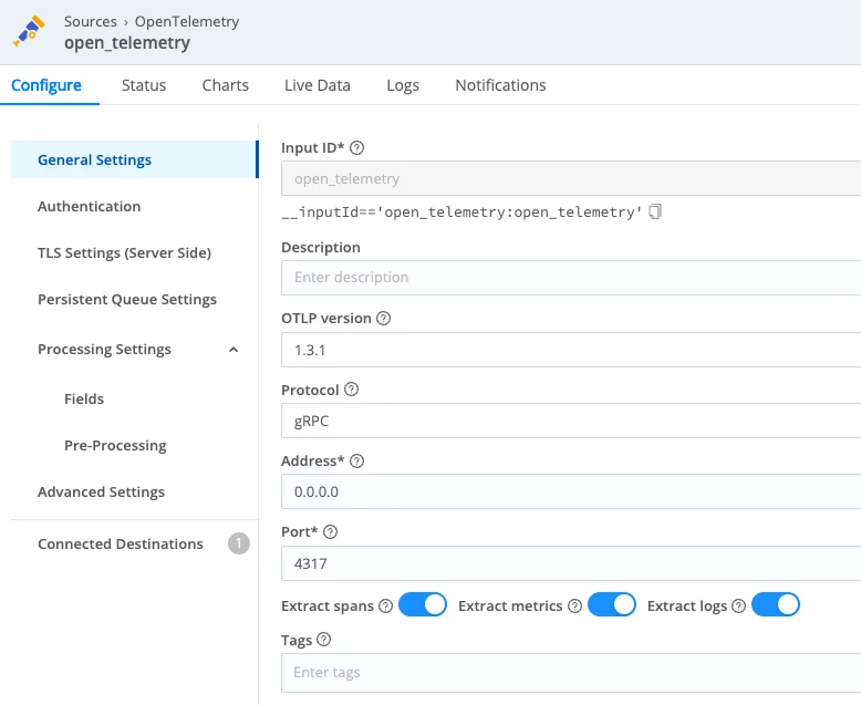 Step 1 - Configure the Cribl Stream OpenTelemetry Source