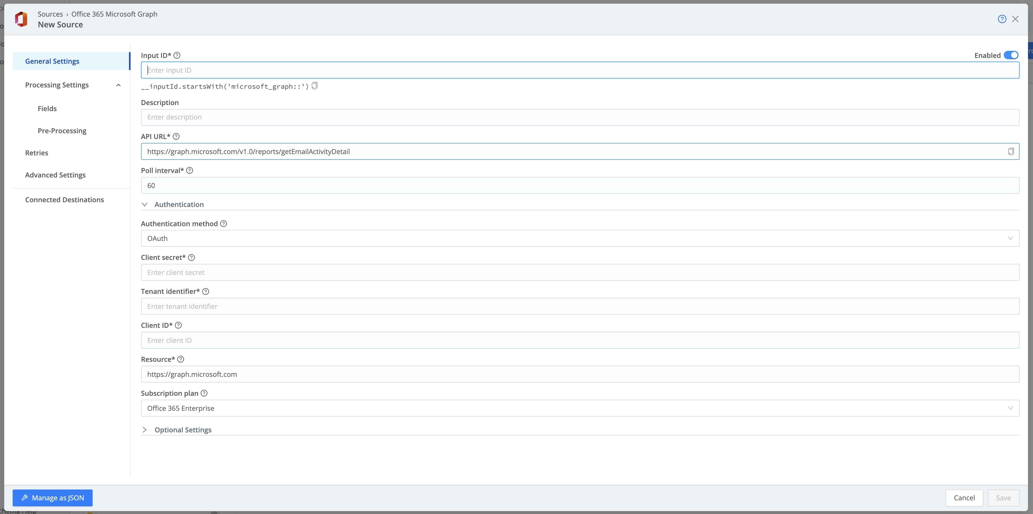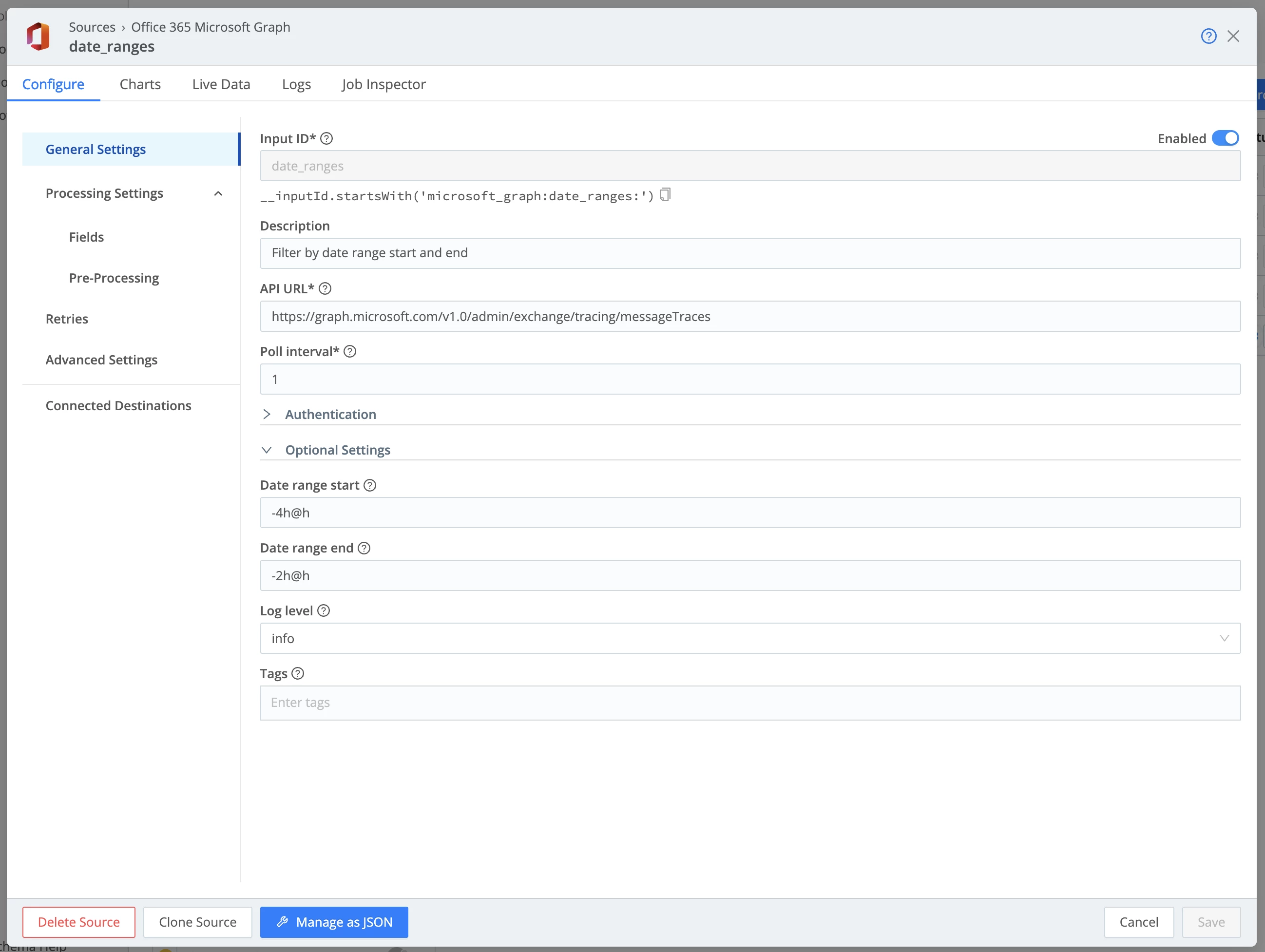 Create a new Microsoft Graph Message Trace pull source