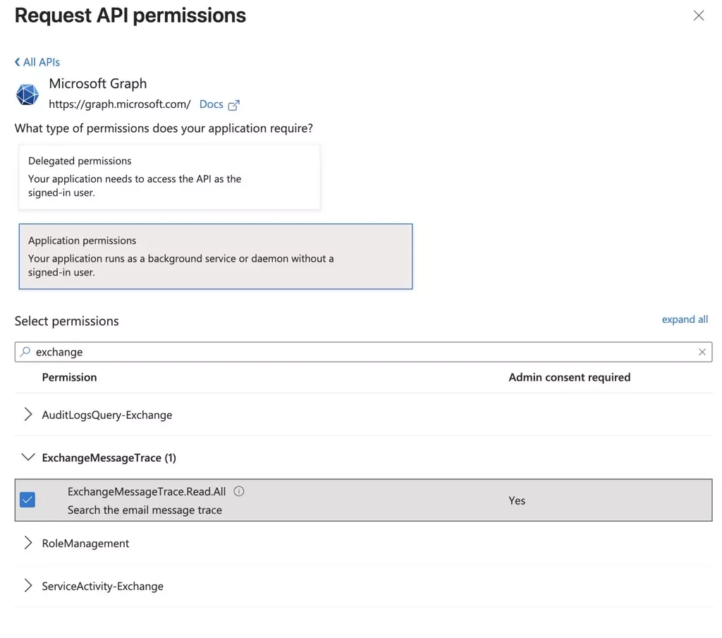 ExchangeMessageTrace.Read.Allunder Microsoft Graph