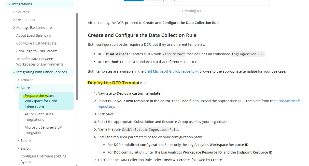 Good morning. I am new user, and I am going through the DCR section of the Prepare the Azure Workspace walkthrough.