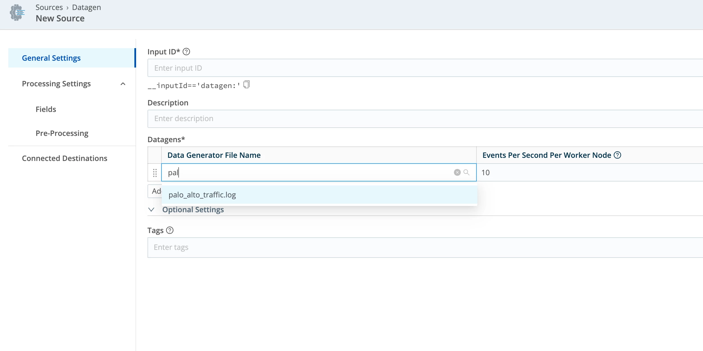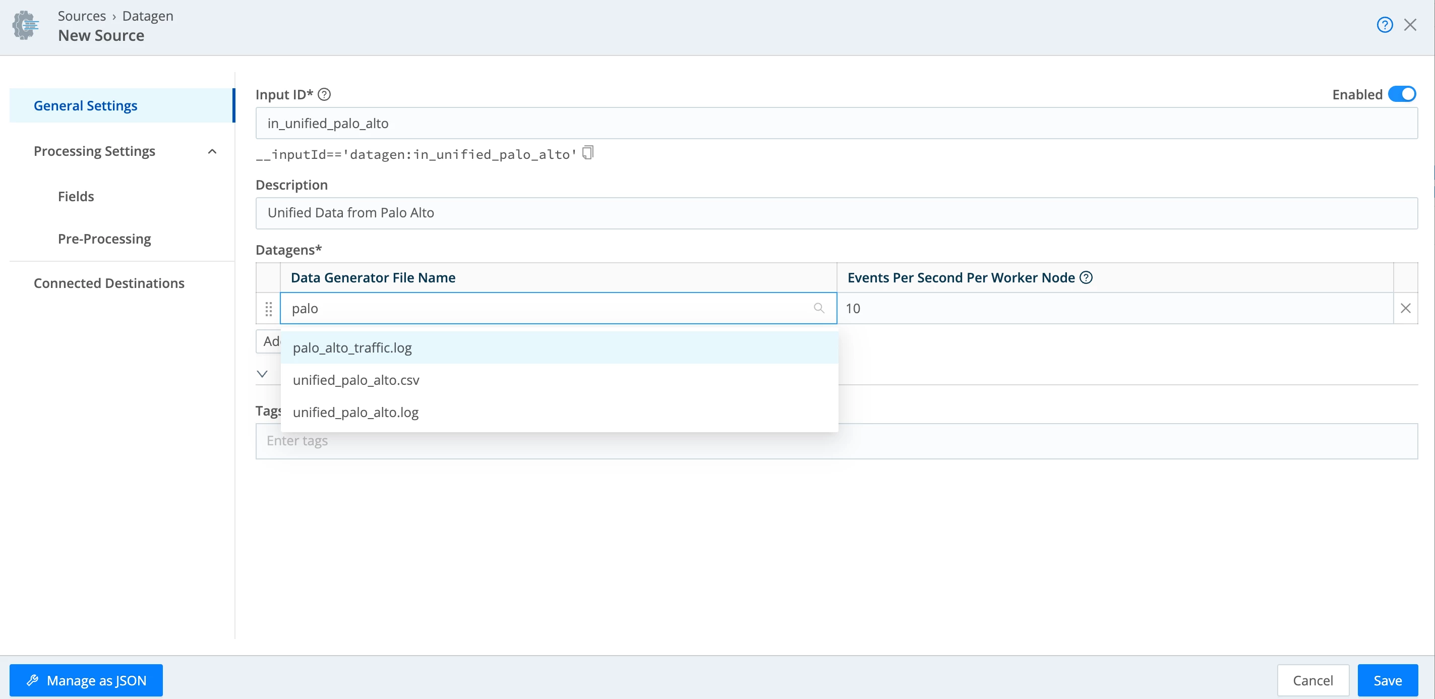 unable to find unified_palo_alto.log in the dropdown present in Datagen Source, hence unable to complete the lab, I don't have chance of manually uploading of the log file to the datagen. Can some one help on resolving the issue